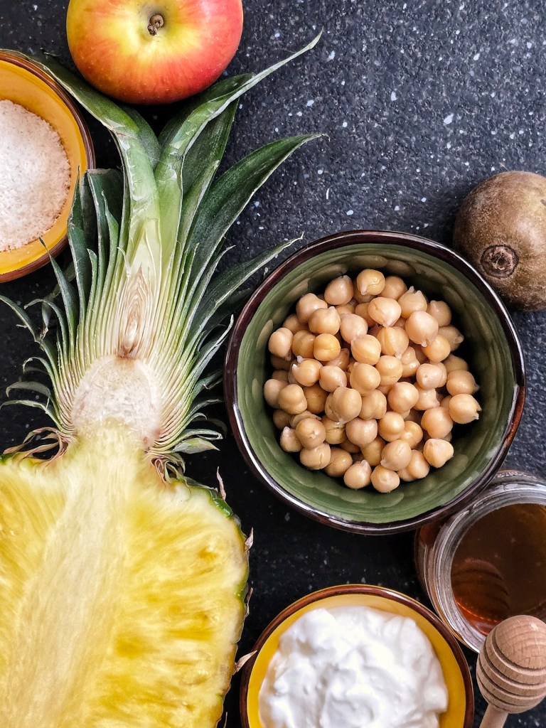 Per preparare la mia macedonia esotica con ceci, serviranno: