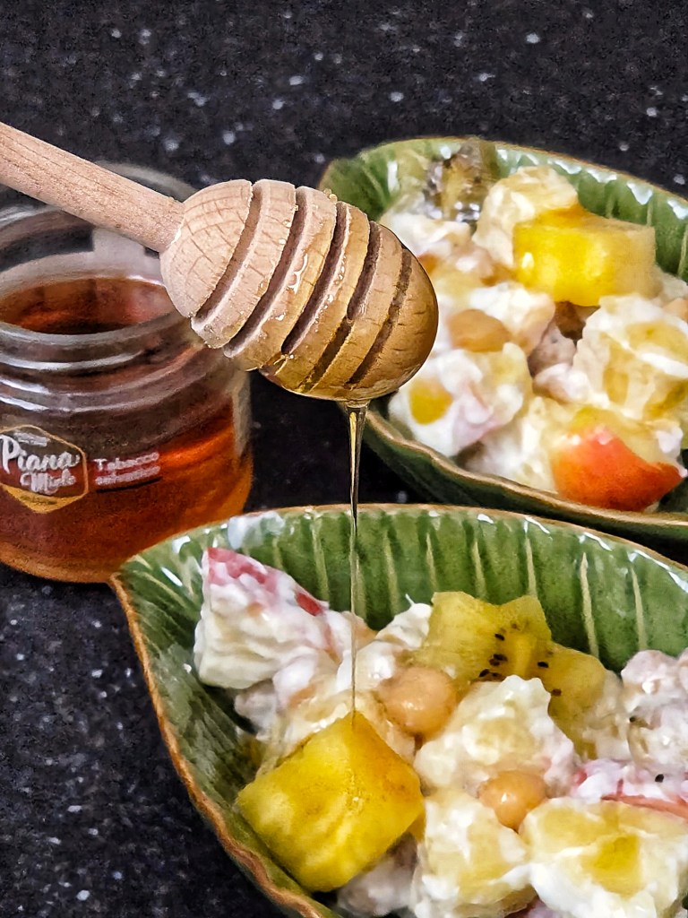 Sono certa che questa ricetta suonerà come qualcosa di destabilizzante… perché è stato così anche per me! Pensare ai ceci in una macedonia di frutta è stata una scoperta innovativa che mi ha fatto riflettere su quanto sia semplice essere creativi in cucina e di quanto, al contempo, (nonostante tante sperimentazioni e assaggi) siamo ancora radicati a sapori e abbinamenti che hanno da sempre fatto della nostra cultura.